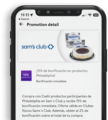 Recibe 2% de bonificación en saldo principal Cashi al pagar con Cuenta Cashi desde tu App, en tiendas físicas y en línea de Bodega Aurrera, Sam's Club y Walmart